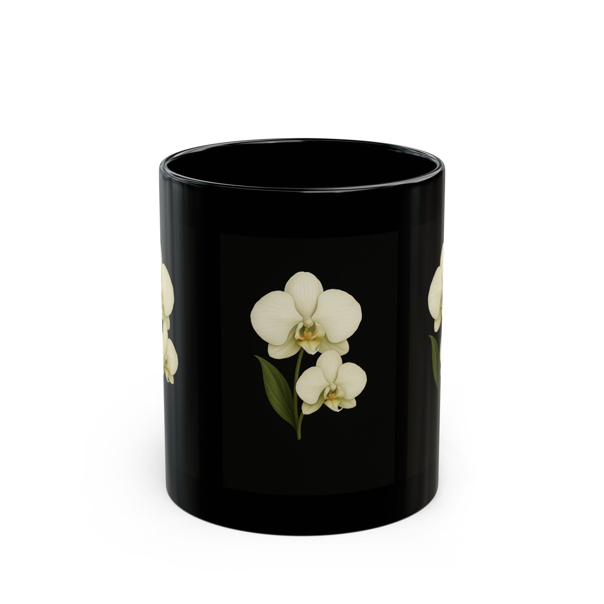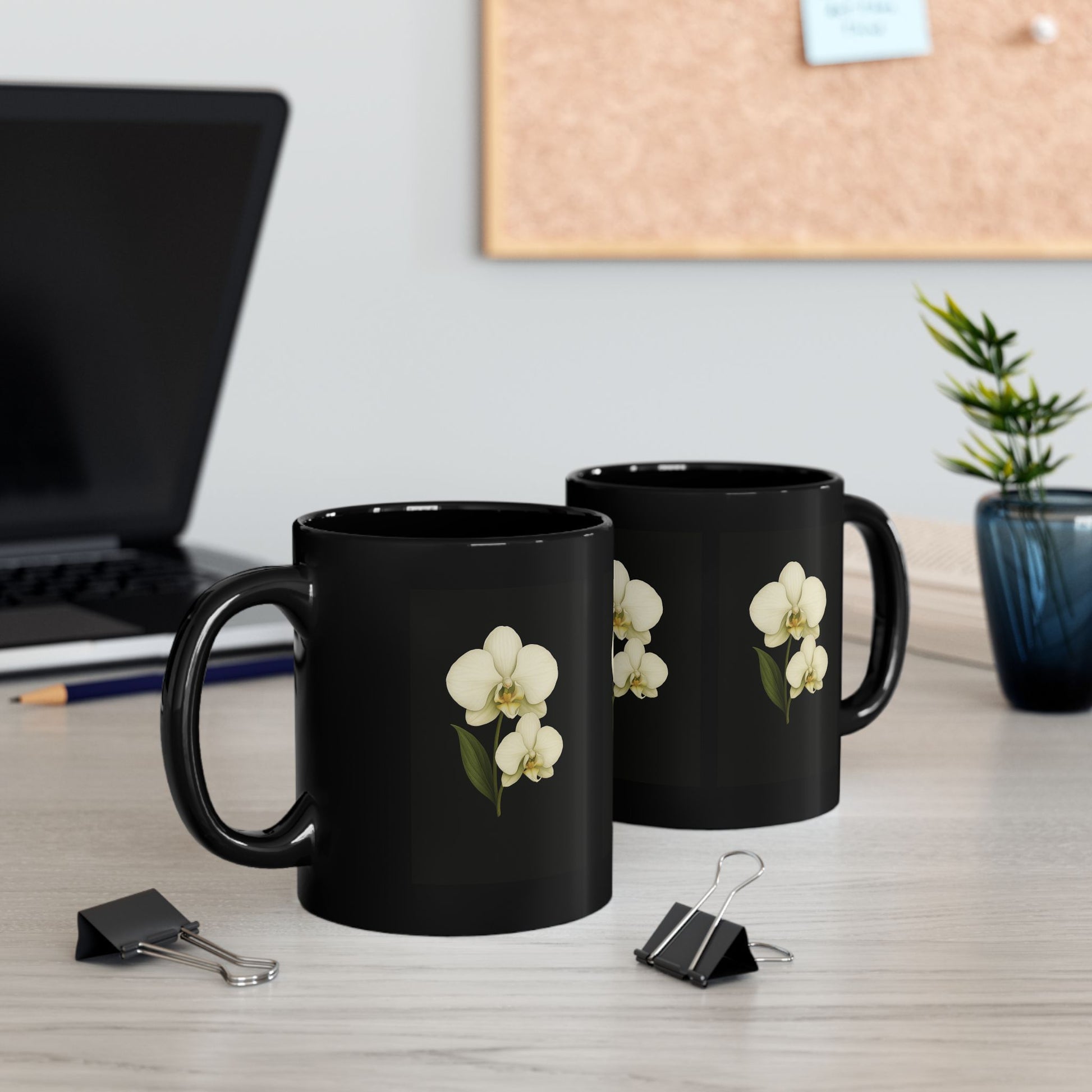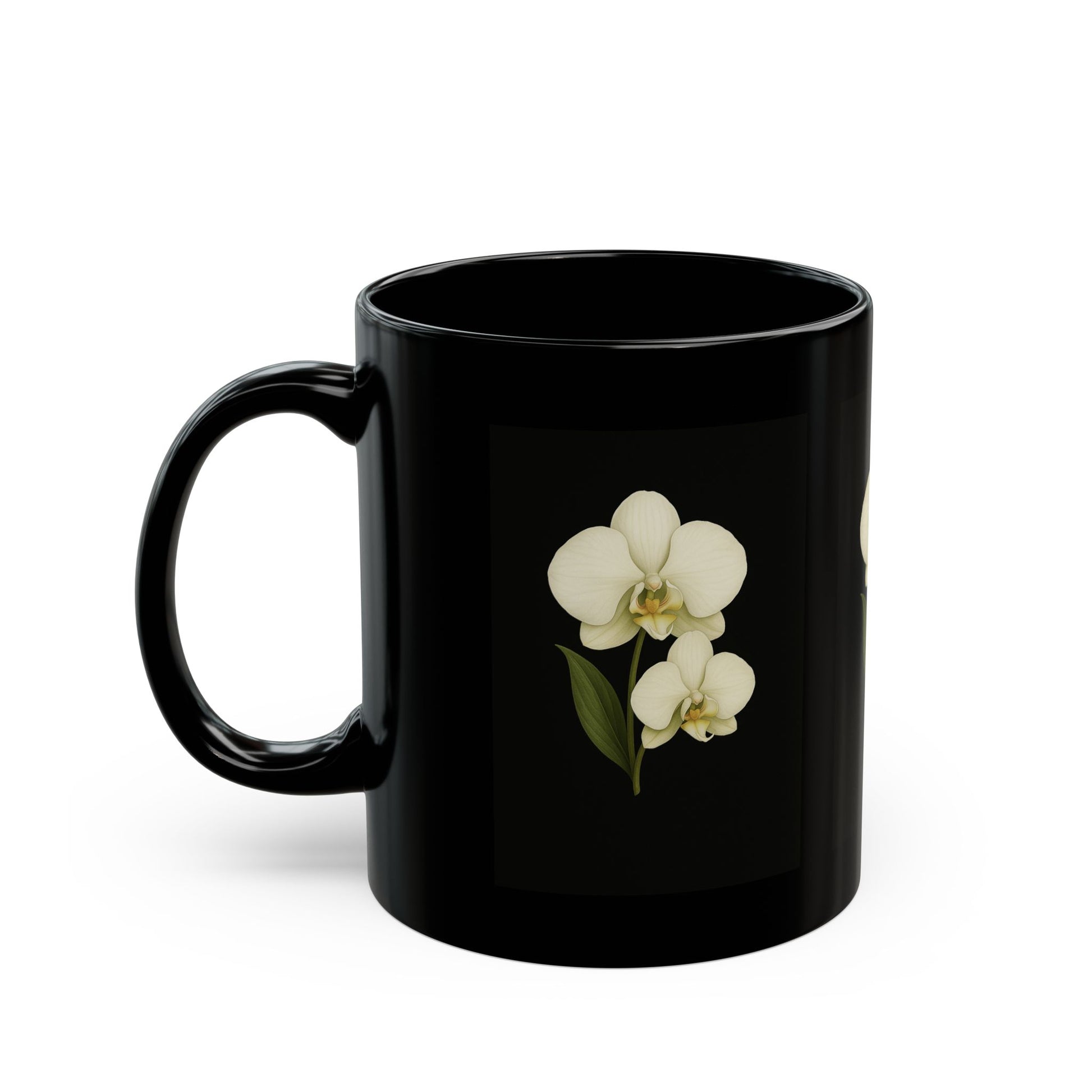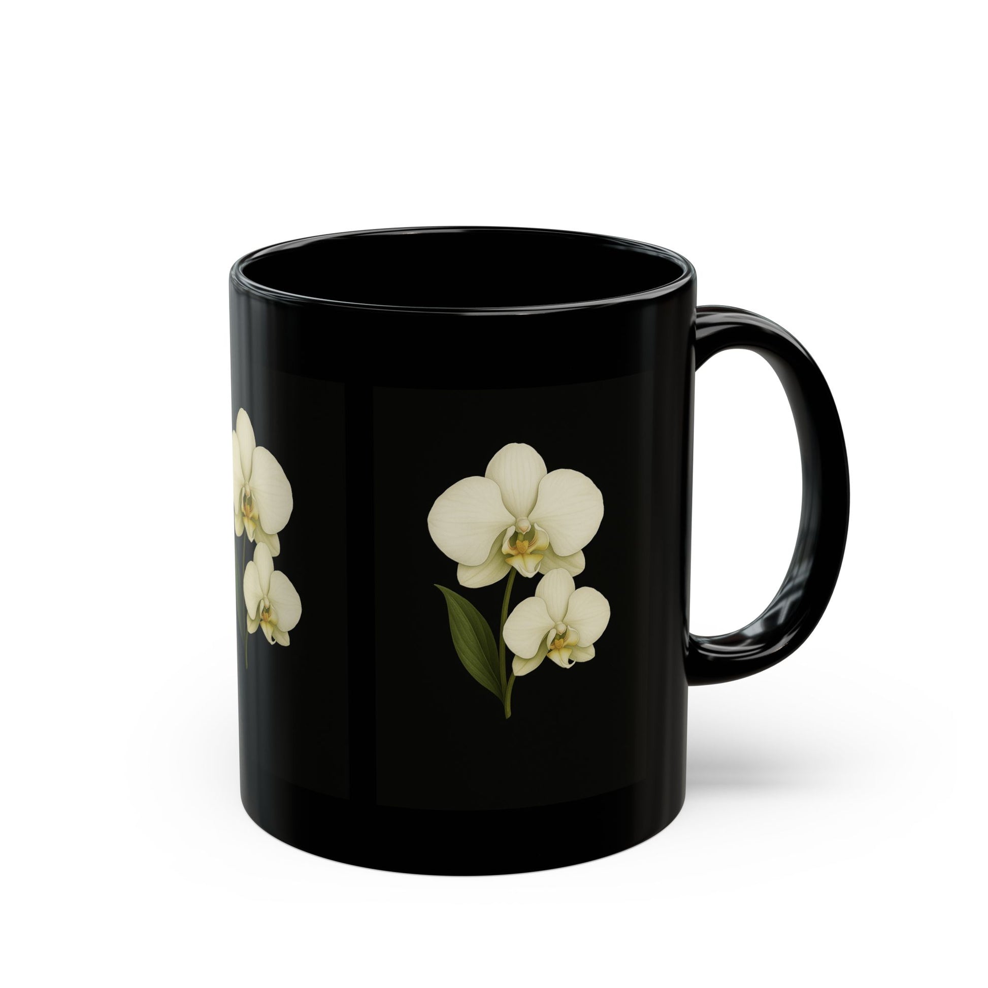 Elegant Orchid Black Mug - Floral Coffee Cup, Perfect Gift for Plant Lovers, Home Decor, Birthday, Housewarming, Mother's Day