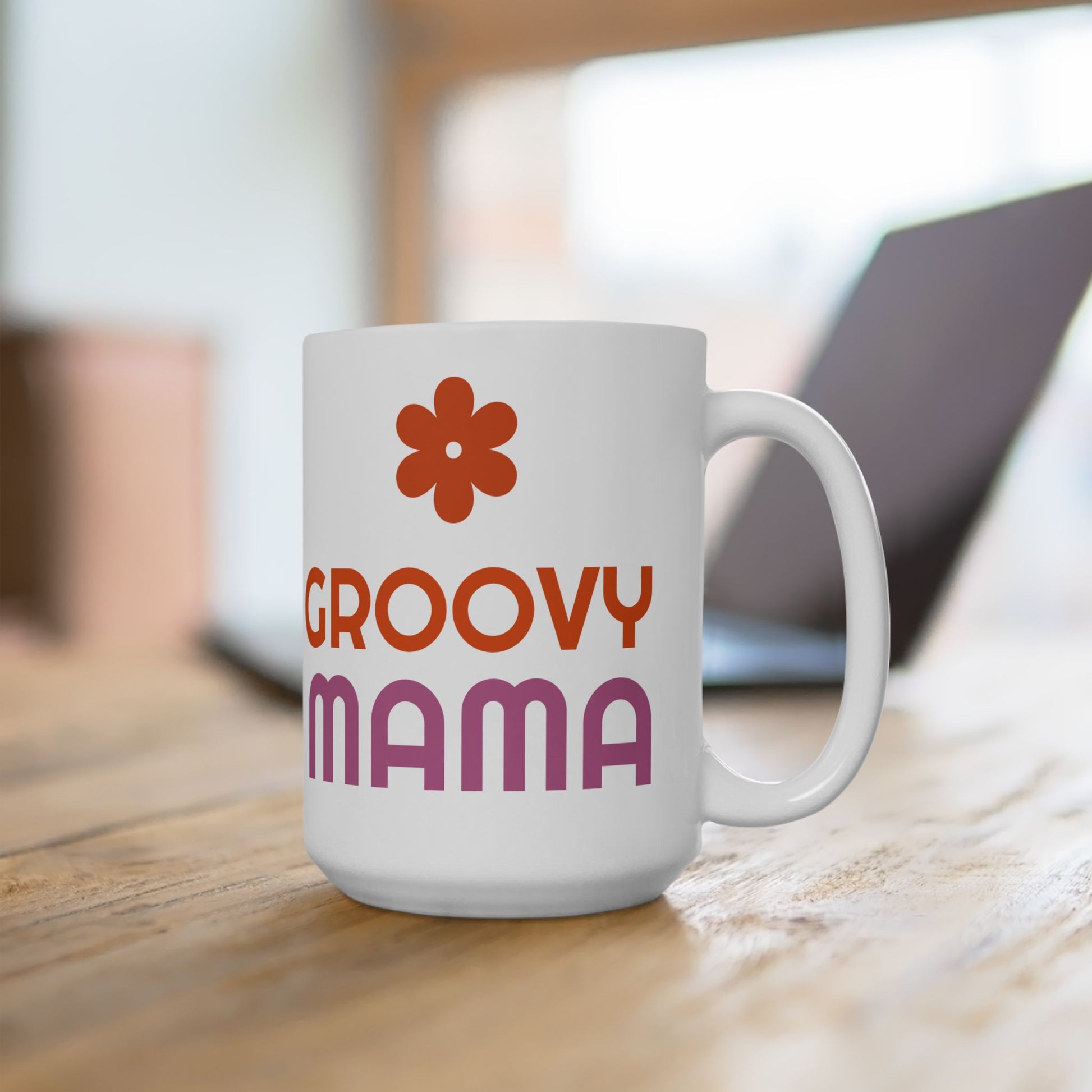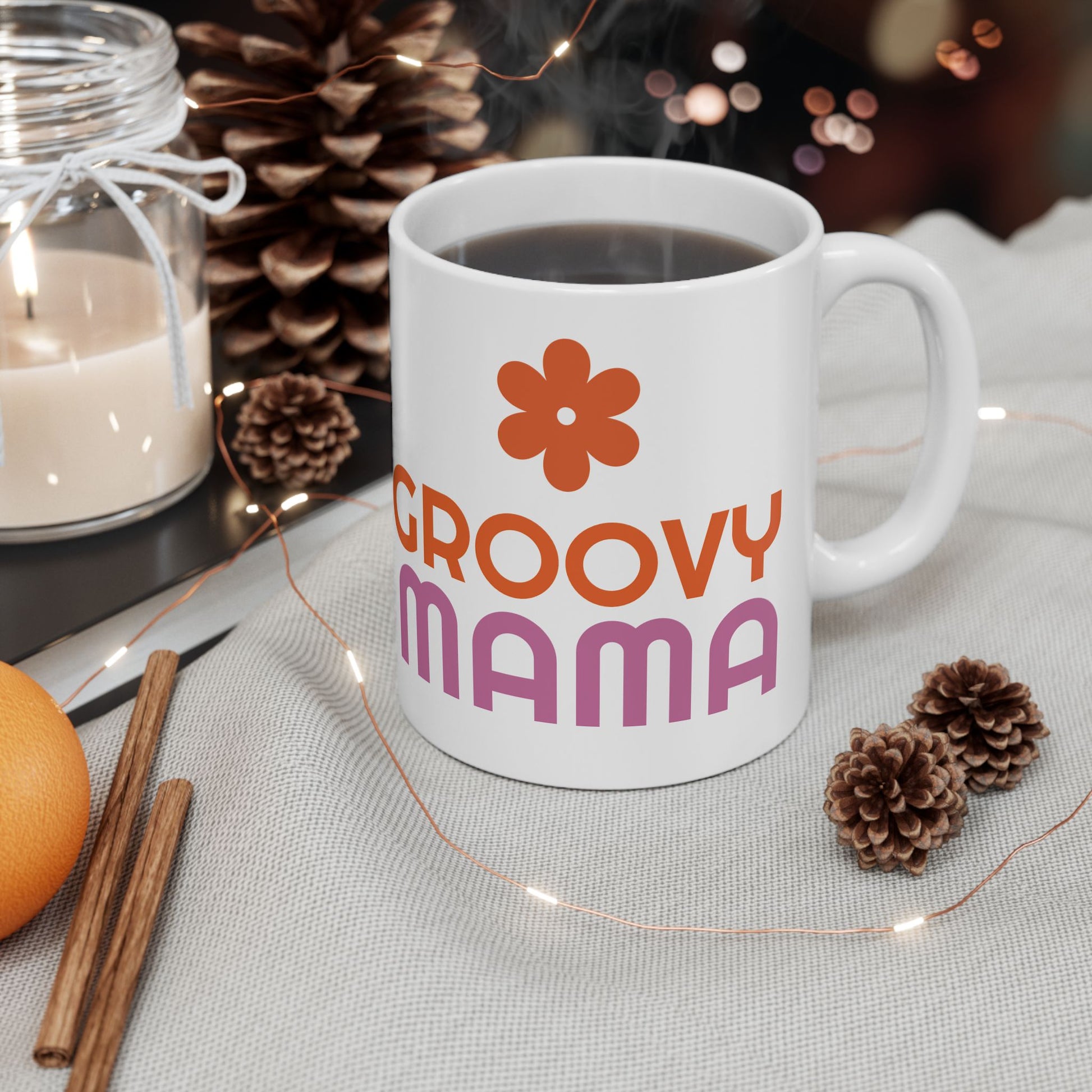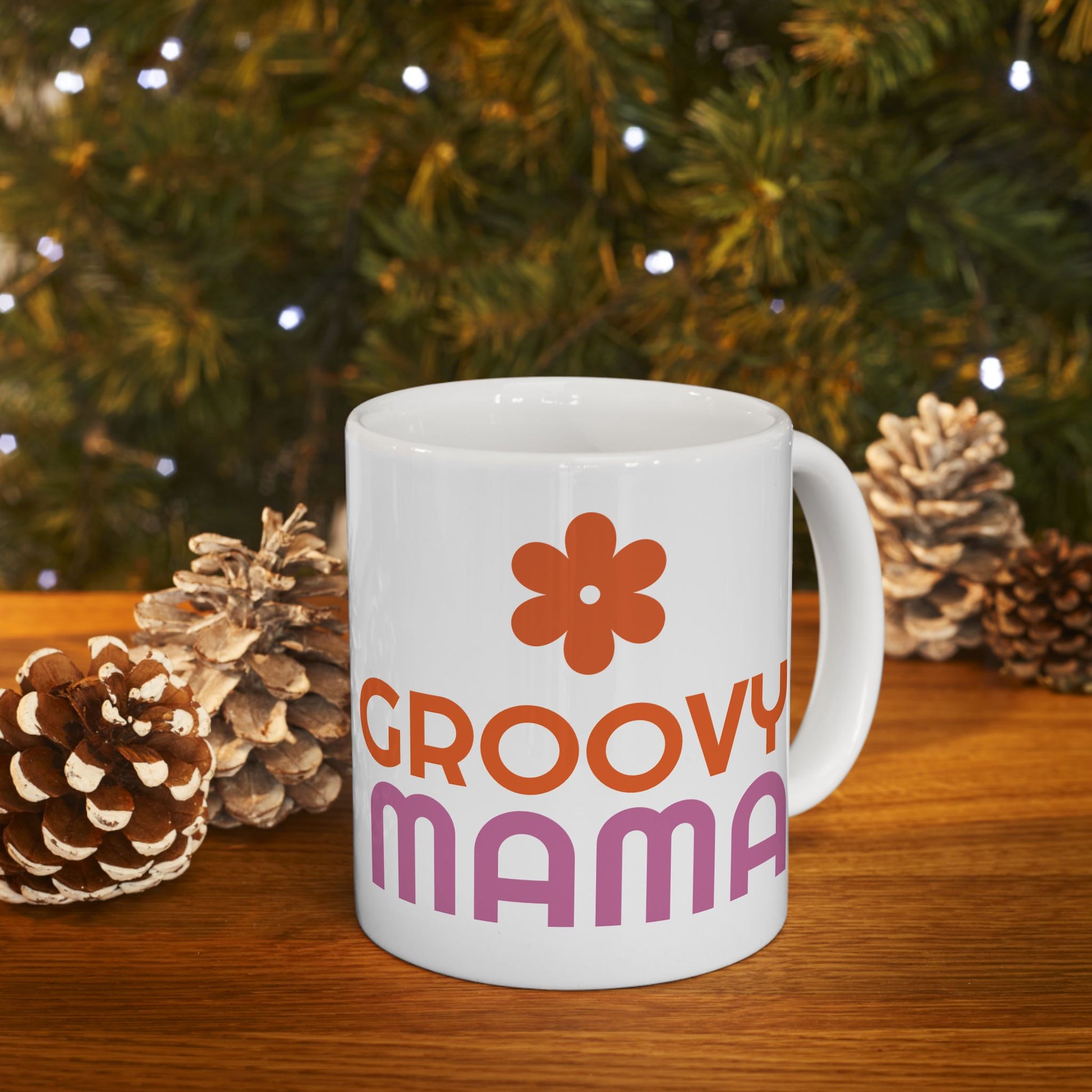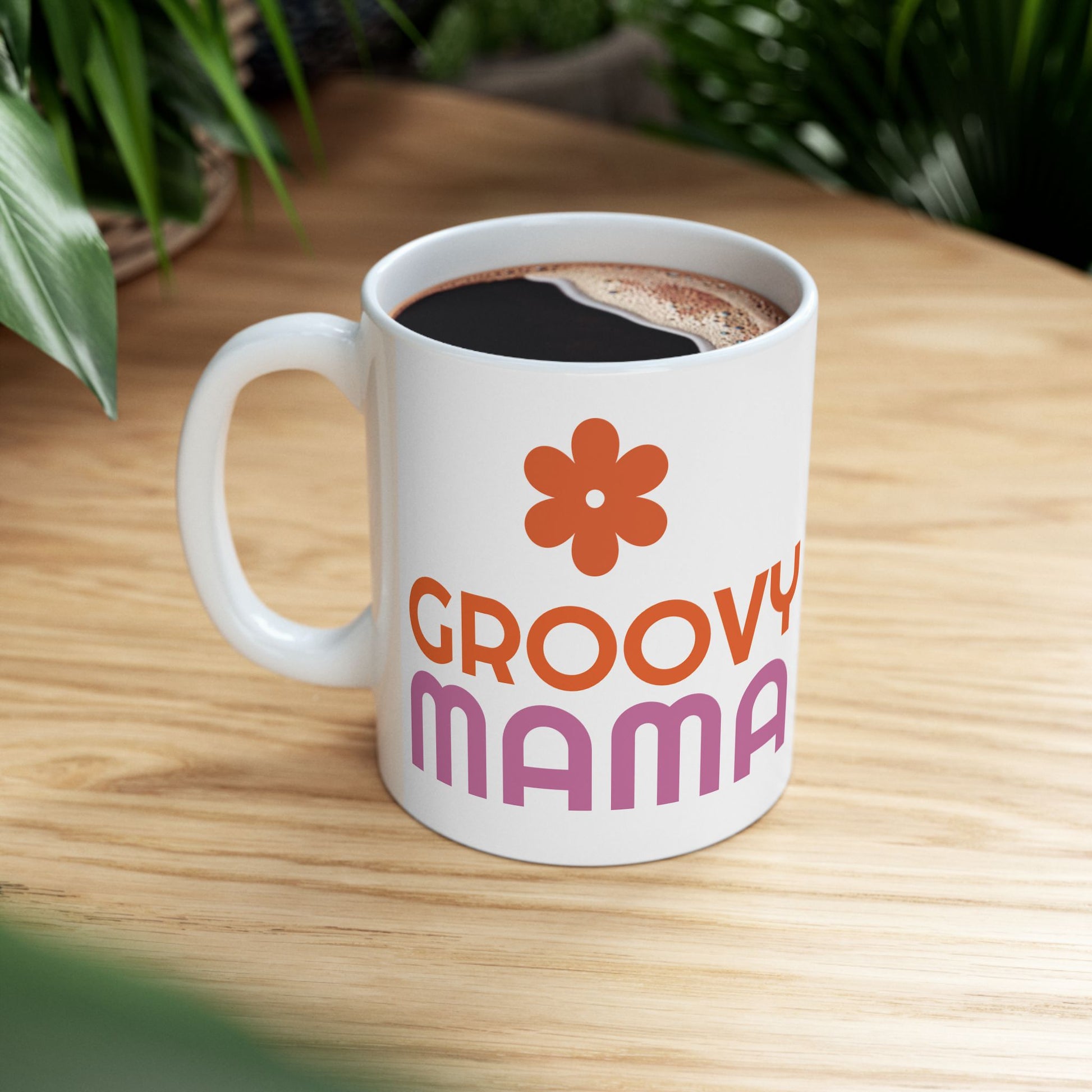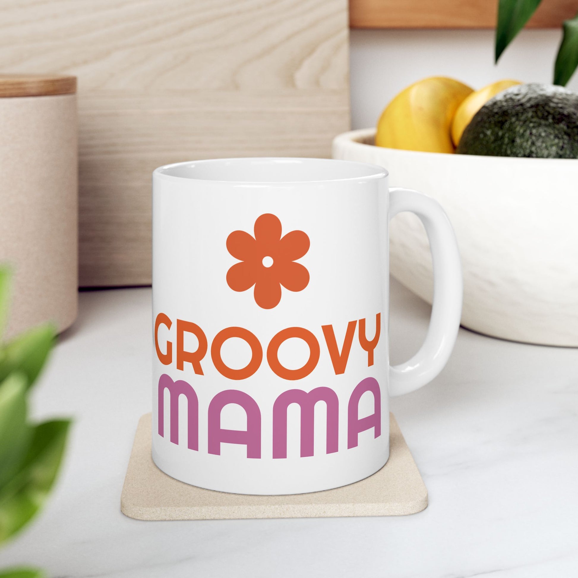 Groovy Mama Ceramic Mug, Fun Coffee Cup for Moms, Great Gift for Mother's Day, Birthday, Enjoy Morning Coffee, Pink & Orange Design