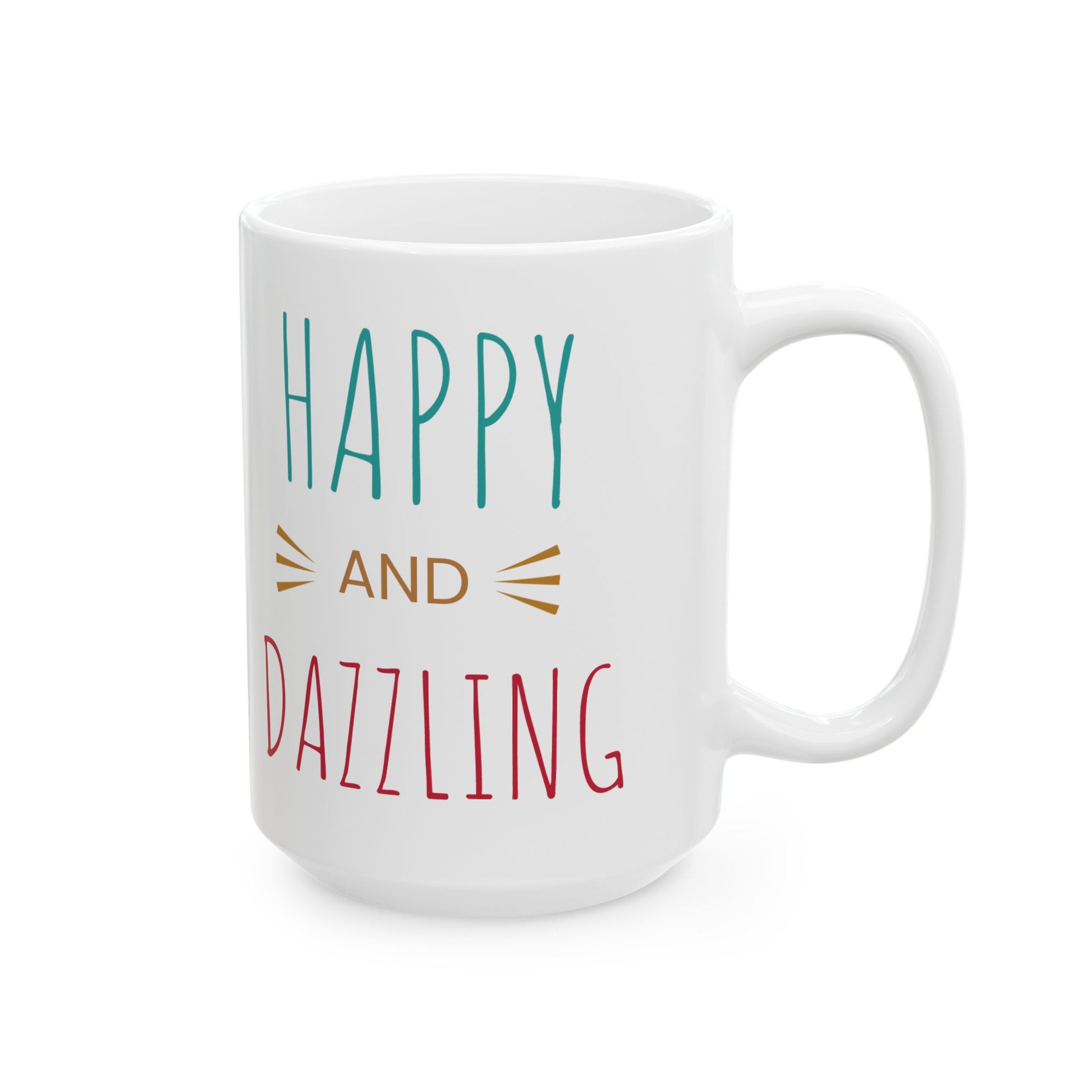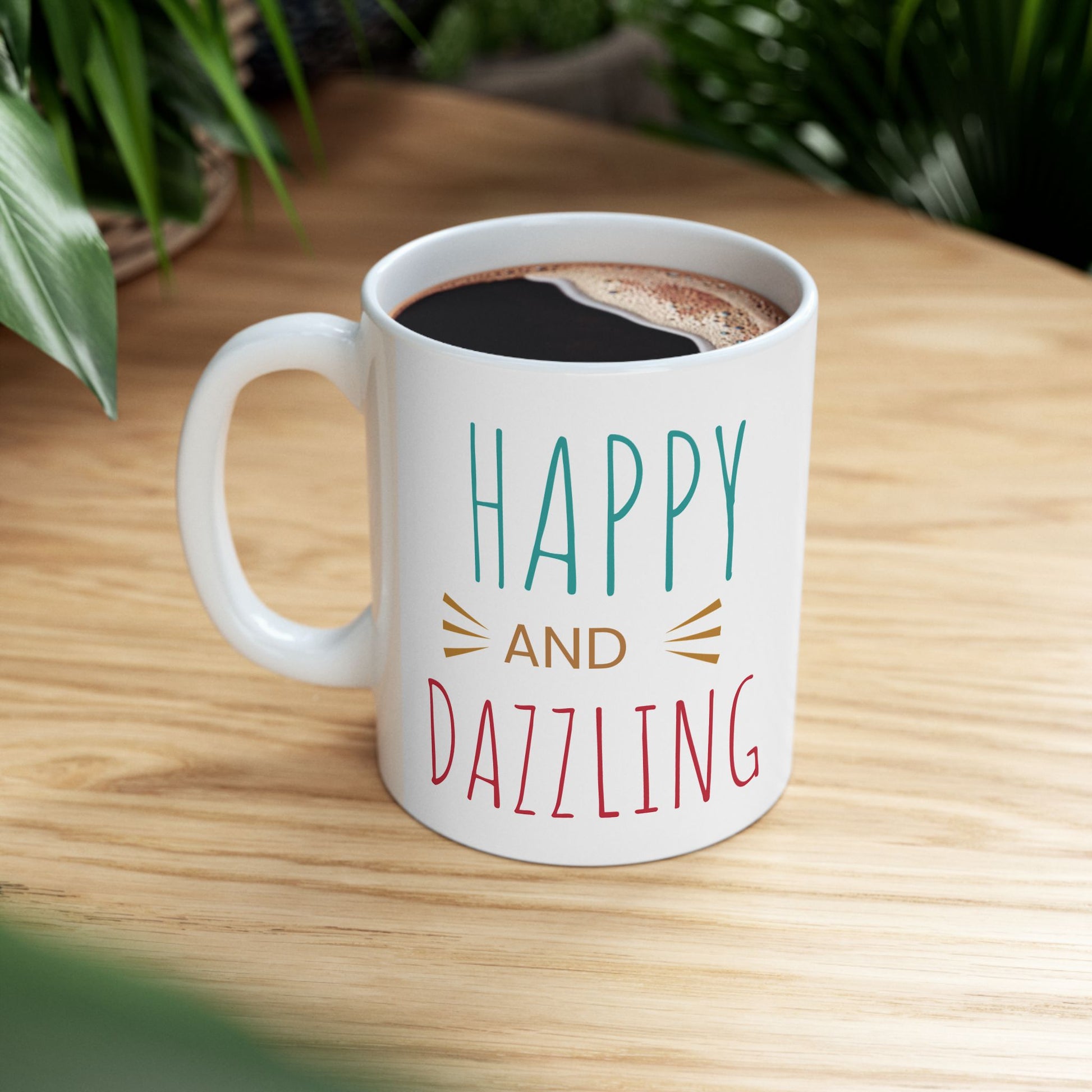Happy and Dazzling Ceramic Mug, Coffee Mug, Gift for Friends, Inspirational Drinkware, Birthday Gift, Holiday Mug, Home & Kitchen